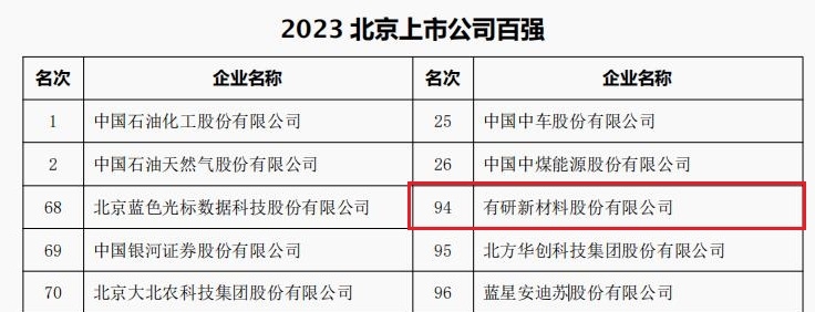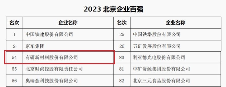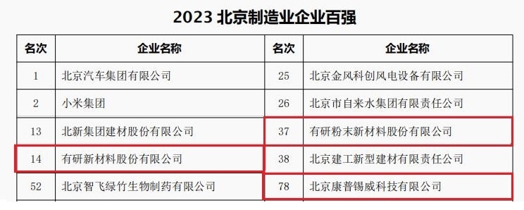 近日,北京企业联合会、北京市企业家协会共同发布“2023北京企业百强”榜单。bbin所属公司有研新材、有研粉材、康普锡威分别荣登北京企业百强、北京制造业企业百强、北京上市公司百强、北京专精特新企业百强四大榜单。