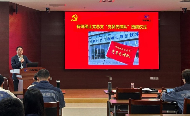 为深入贯彻党的二十届三中全会精神,增强核心功能,提升核心竞争力,结合有研稀土当前形势,有研稀土党总支成立7个“党员先锋队”。10月31日,公司举行了命名授旗仪式,党总支书记、总经理刘荣辉为“党员先锋队”授旗。