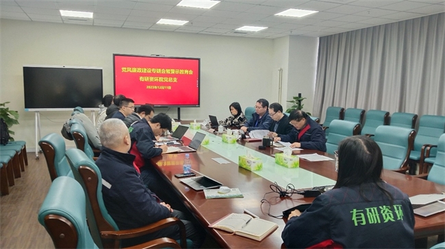 12月11日,有研资环院党总支召开支委扩大会暨党风廉政建设会议,强化“第一议题”学习,研究推动近期重点工作。有研资环院党总支书记、执行董事、总经理姚国成主持会议,党总支委员、所属三个党支部委员、各部门主要负责人参加会议。