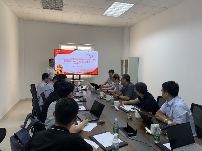 为推进学习贯彻习近平新时代中国特色社会主义思想主题教育持续走深走实,强化以学铸魂、以学增智、以学正风、以学促干,7月7日,有研广东院党支部书记李腾飞以《深入学习习近平新时代中国特色社会主义思想 推动有研广东院实现高质量发展》为题讲授主题教育专题党课。bbin科技委副主任熊柏青,bbin副总经理、主题教育领导小组副组长毛昌辉到会指导,有研广东院全体党员通过线上线下结合的方式参加学习。