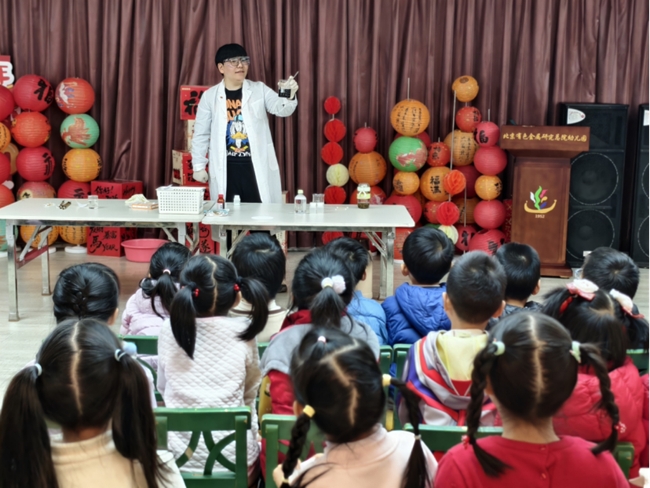 1月9日,有研新材团委联合国合通测第一、第三团支部和有研兴友团支部开展第三期“送课入园”活动,青年团员以一场妙趣横生的化学小实验科普活动,为孩子们开启了一扇探索科学奥秘的大门,用青春力量点亮童心梦想。