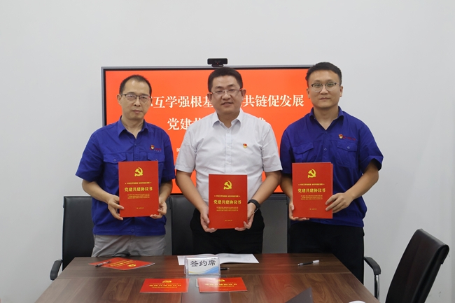 随后,联建三方签订了党建共建协议,充分发挥党建引领作用,促进三方在党支部建设与业务工作上的协同发展,推动形成“党业共融、优势互补、资源共享、共同提高”的党建工作新格局,实现党建搭桥凝聚共识、业务提升筑牢堡垒的工作目标。