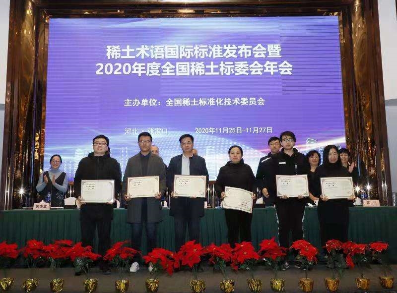 会议颁发了“2020年度稀土标委会技术标准优秀奖”,并对“2020年度稀土标准化先进工作者”进行了表彰。有研稀土及其子公司乐山有研牵头制定的两项行业标准《绿色设计产品评价技术规范 稀土火法冶炼产品》《镧铈金属》均获得2020年度稀土标委会技术标准奖;赵龙胜博士获评2020年度稀土标准化先进工作者。