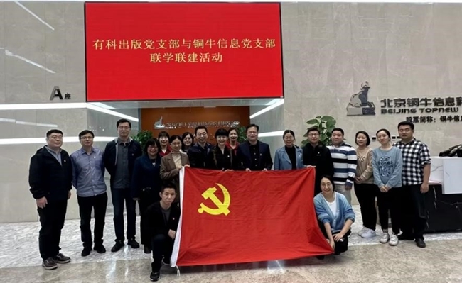 近日,有科出版党员代表赴北京铜牛信息科技股份有限公司开展党支部联学联建活动。有科出版党支部书记钱九红、铜牛信息党支部书记高鸿波等20余人参加活动。