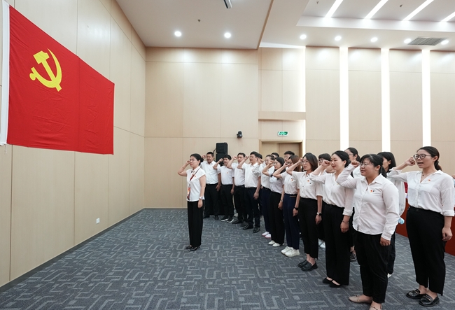 大会在庄严的国歌声中拉开序幕,新发展党员代表们面向党旗郑重宣誓,许下为共产主义事业奋斗终身的坚定承诺。