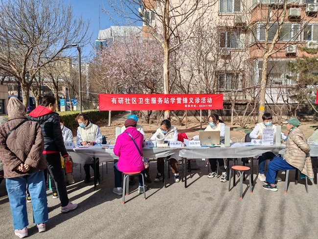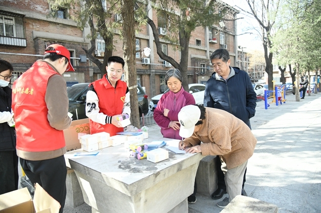 有研卫生站的医护人员为居民们提供了测量血氧、血压,中医测评等服务。职工青年和研究生志愿者积极开展法律咨询、环保和反诈宣传、幼儿教育咨询,并为社区居民发放便民物品。