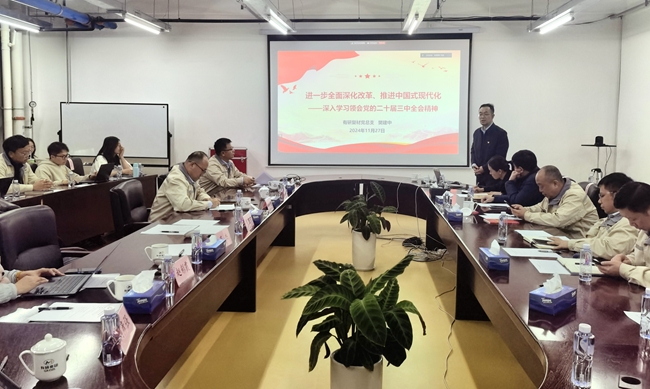 为深入学习贯彻党的二十届三中全会精神,深刻领会会议提出的进一步全面深化改革的指导思想,11月27日,有研复材党总支书记、董事长樊建中以“进一步全面深化改革、推动有研复材创新驱动高质量发展”为题为全体党员讲授党课。有研复材全体党员参会,其中火炬特材、廊坊复材、忻州复材、东莞复材党员线上参会。